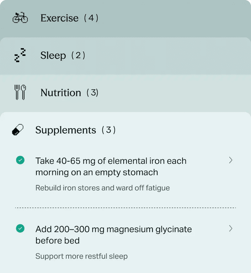In-depth recommendations across exercise, nutrition, and supplements